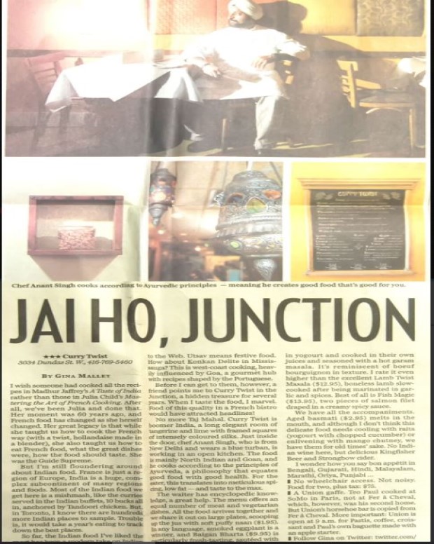 "Curry Twist is boomer India, a long elegant room of tangerine and lime with framed square of intensely coloured silks. For the eater, this translates into meticulous spicing, low fat - and taste to the max."